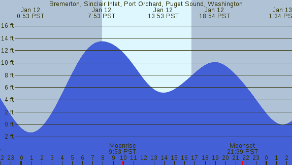 Tidal Heights at Bremerton, Sinclair Inlet, Port Orchard, Puget Sound, Washington