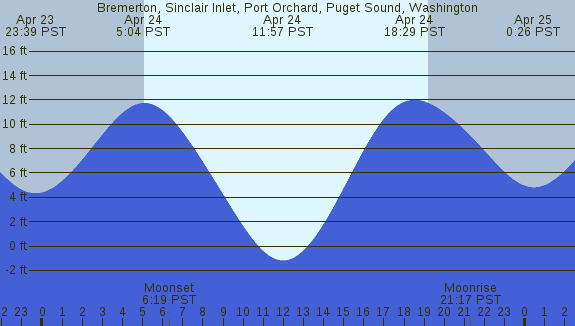Tidal Heights at Bremerton, Sinclair Inlet, Port Orchard, Puget Sound, Washington