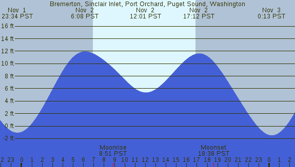 Tidal Heights at Bremerton, Sinclair Inlet, Port Orchard, Puget Sound, Washington