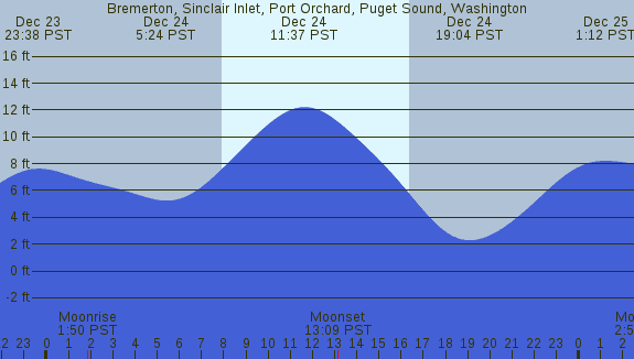 Tidal Heights at Bremerton, Sinclair Inlet, Port Orchard, Puget Sound, Washington