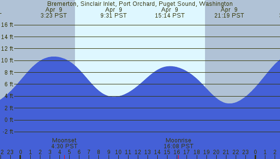Tidal Heights at Bremerton, Sinclair Inlet, Port Orchard, Puget Sound, Washington