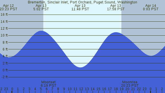 Tidal Heights at Bremerton, Sinclair Inlet, Port Orchard, Puget Sound, Washington