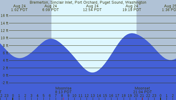 Tidal Heights at Bremerton, Sinclair Inlet, Port Orchard, Puget Sound, Washington