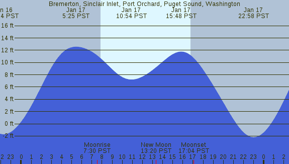 Tidal Heights at Bremerton, Sinclair Inlet, Port Orchard, Puget Sound, Washington