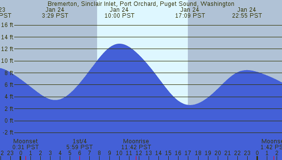 Tidal Heights at Bremerton, Sinclair Inlet, Port Orchard, Puget Sound, Washington