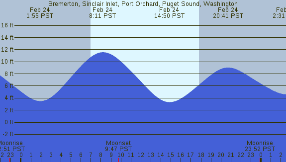 Tidal Heights at Bremerton, Sinclair Inlet, Port Orchard, Puget Sound, Washington