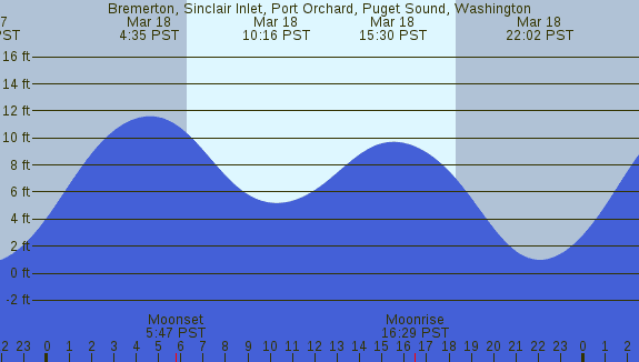 Tidal Heights at Bremerton, Sinclair Inlet, Port Orchard, Puget Sound, Washington