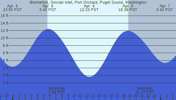 Tidal Heights at Bremerton, Sinclair Inlet, Port Orchard, Puget Sound, Washington