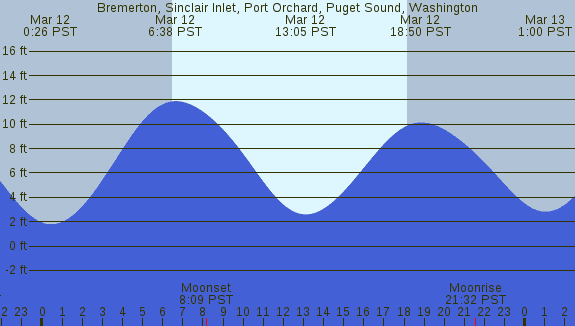 Tidal Heights at Bremerton, Sinclair Inlet, Port Orchard, Puget Sound, Washington