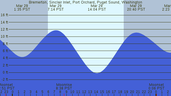 Tidal Heights at Bremerton, Sinclair Inlet, Port Orchard, Puget Sound, Washington