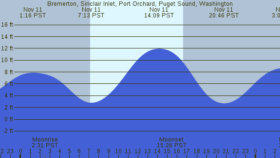 Tidal Heights at Bremerton, Sinclair Inlet, Port Orchard, Puget Sound, Washington