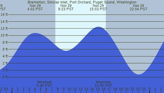 Tidal Heights at Bremerton, Sinclair Inlet, Port Orchard, Puget Sound, Washington