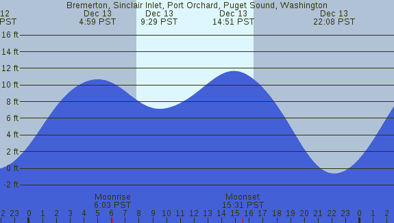 Tidal Heights at Bremerton, Sinclair Inlet, Port Orchard, Puget Sound, Washington