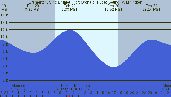 Tidal Heights at Bremerton, Sinclair Inlet, Port Orchard, Puget Sound, Washington