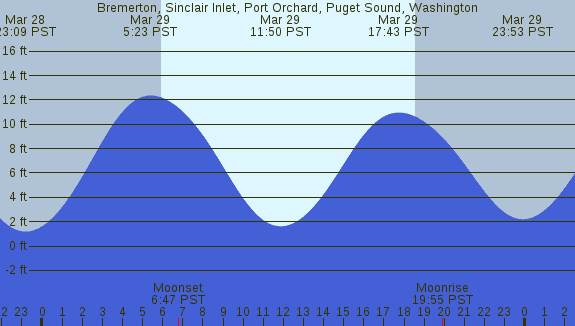 Tidal Heights at Bremerton, Sinclair Inlet, Port Orchard, Puget Sound, Washington