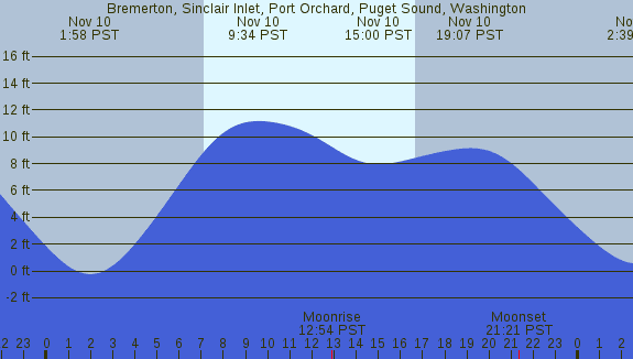 Tidal Heights at Bremerton, Sinclair Inlet, Port Orchard, Puget Sound, Washington