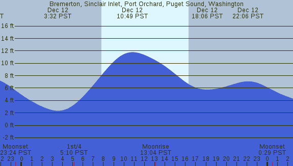 Tidal Heights at Bremerton, Sinclair Inlet, Port Orchard, Puget Sound, Washington