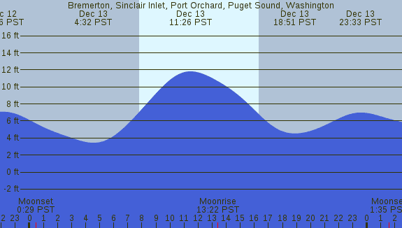 Tidal Heights at Bremerton, Sinclair Inlet, Port Orchard, Puget Sound, Washington