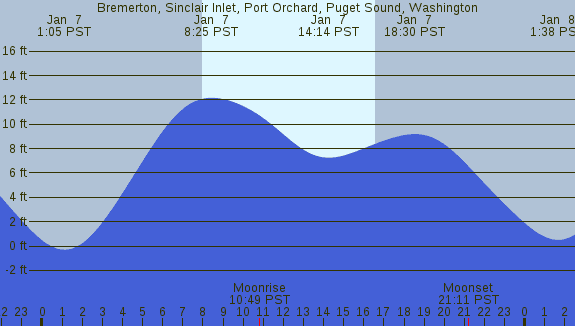 Tidal Heights at Bremerton, Sinclair Inlet, Port Orchard, Puget Sound, Washington