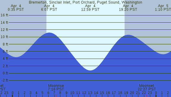 Tidal Heights at Bremerton, Sinclair Inlet, Port Orchard, Puget Sound, Washington