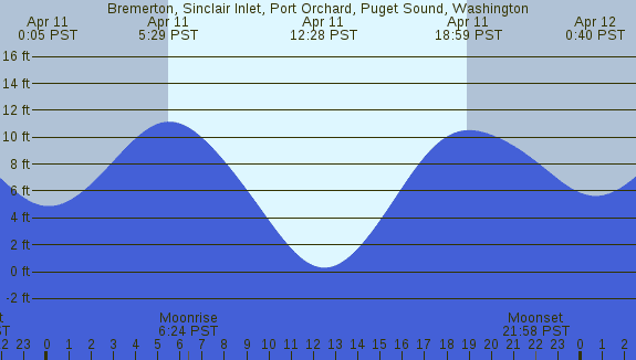 Tidal Heights at Bremerton, Sinclair Inlet, Port Orchard, Puget Sound, Washington