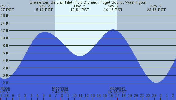 Tidal Heights at Bremerton, Sinclair Inlet, Port Orchard, Puget Sound, Washington