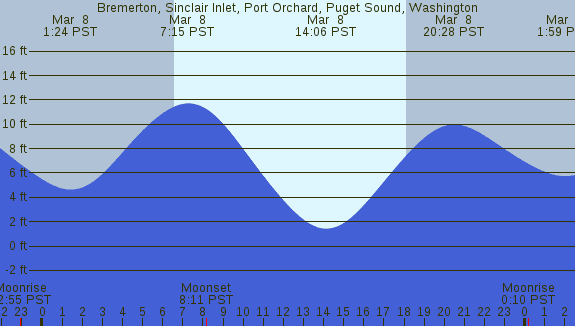 Tidal Heights at Bremerton, Sinclair Inlet, Port Orchard, Puget Sound, Washington