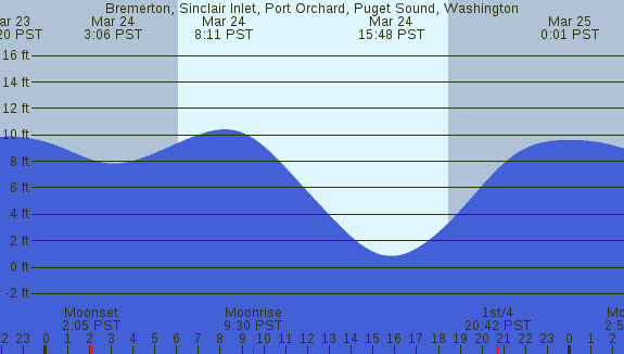 Tidal Heights at Bremerton, Sinclair Inlet, Port Orchard, Puget Sound, Washington