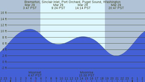 Tidal Heights at Bremerton, Sinclair Inlet, Port Orchard, Puget Sound, Washington