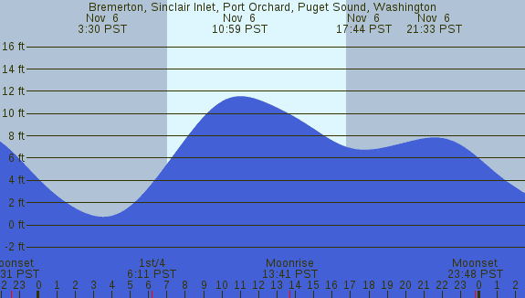 Tidal Heights at Bremerton, Sinclair Inlet, Port Orchard, Puget Sound, Washington