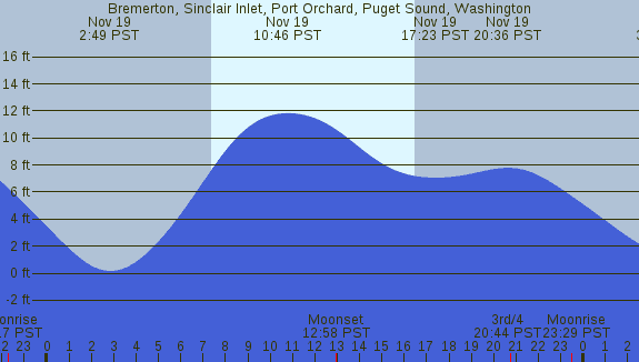 Tidal Heights at Bremerton, Sinclair Inlet, Port Orchard, Puget Sound, Washington