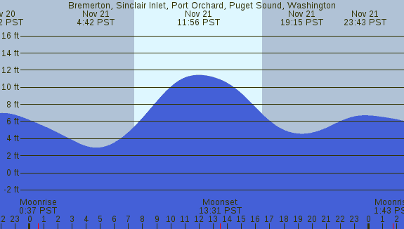Tidal Heights at Bremerton, Sinclair Inlet, Port Orchard, Puget Sound, Washington