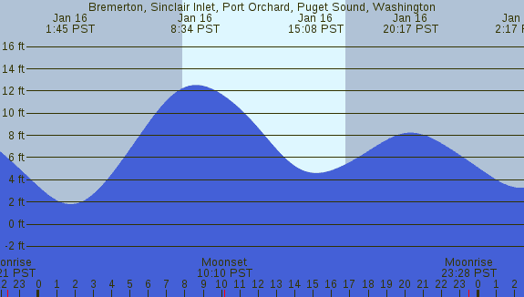 Tidal Heights at Bremerton, Sinclair Inlet, Port Orchard, Puget Sound, Washington