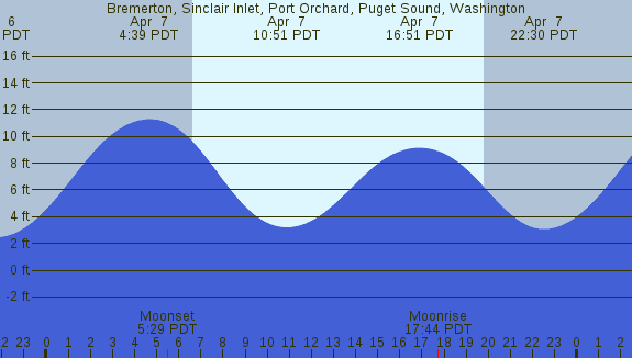 Tidal Heights at Bremerton, Sinclair Inlet, Port Orchard, Puget Sound, Washington