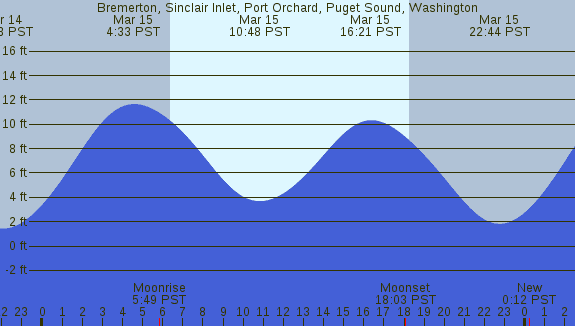 Tidal Heights at Bremerton, Sinclair Inlet, Port Orchard, Puget Sound, Washington