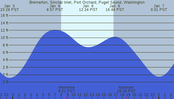 Tidal Heights at Bremerton, Sinclair Inlet, Port Orchard, Puget Sound, Washington