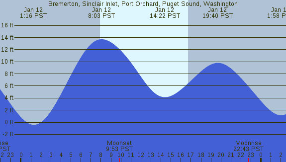 Tidal Heights at Bremerton, Sinclair Inlet, Port Orchard, Puget Sound, Washington
