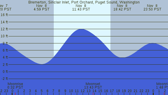 Tidal Heights at Bremerton, Sinclair Inlet, Port Orchard, Puget Sound, Washington
