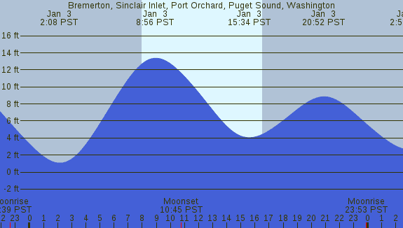 Tidal Heights at Bremerton, Sinclair Inlet, Port Orchard, Puget Sound, Washington