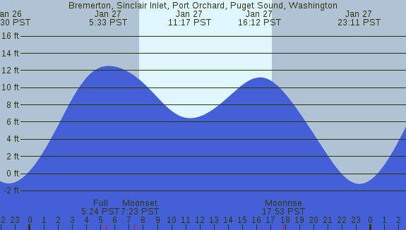 Tidal Heights at Bremerton, Sinclair Inlet, Port Orchard, Puget Sound, Washington