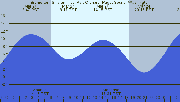 Tidal Heights at Bremerton, Sinclair Inlet, Port Orchard, Puget Sound, Washington