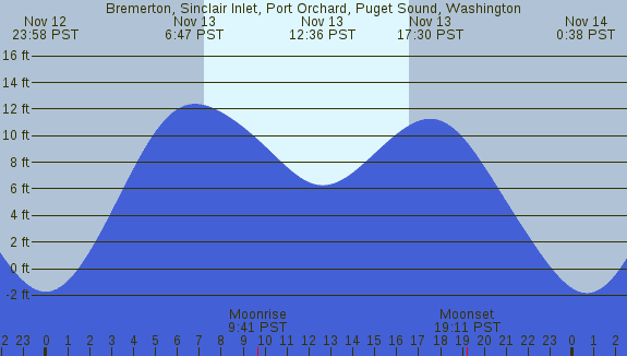 Tidal Heights at Bremerton, Sinclair Inlet, Port Orchard, Puget Sound, Washington