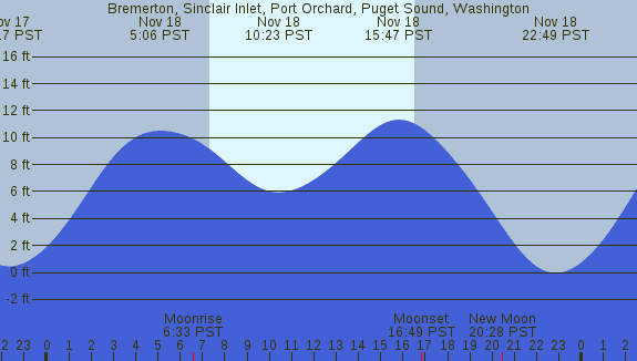 Tidal Heights at Bremerton, Sinclair Inlet, Port Orchard, Puget Sound, Washington