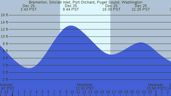 Tidal Heights at Bremerton, Sinclair Inlet, Port Orchard, Puget Sound, Washington