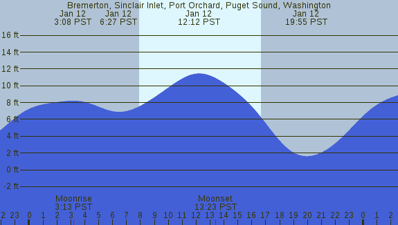 Tidal Heights at Bremerton, Sinclair Inlet, Port Orchard, Puget Sound, Washington