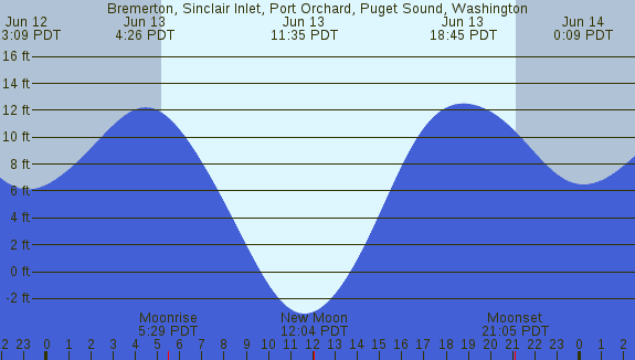 Tidal Heights at Bremerton, Sinclair Inlet, Port Orchard, Puget Sound, Washington