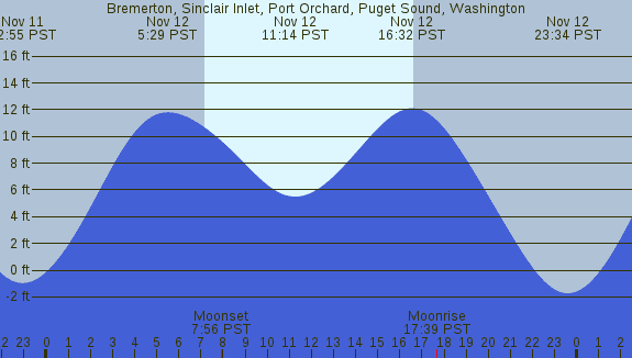 Tidal Heights at Bremerton, Sinclair Inlet, Port Orchard, Puget Sound, Washington