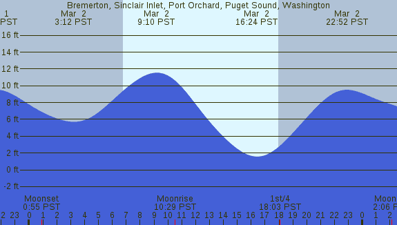 Tidal Heights at Bremerton, Sinclair Inlet, Port Orchard, Puget Sound, Washington