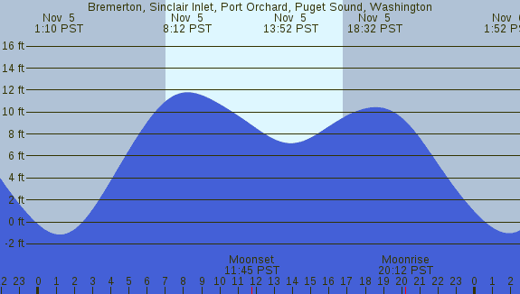 Tidal Heights at Bremerton, Sinclair Inlet, Port Orchard, Puget Sound, Washington