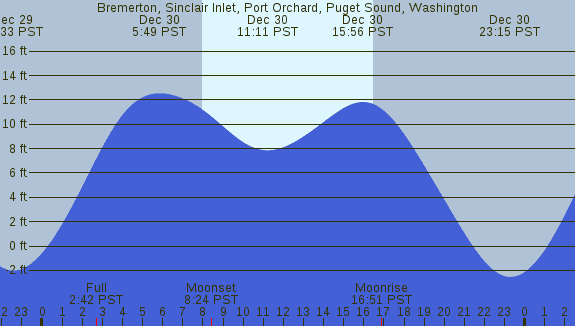 Tidal Heights at Bremerton, Sinclair Inlet, Port Orchard, Puget Sound, Washington